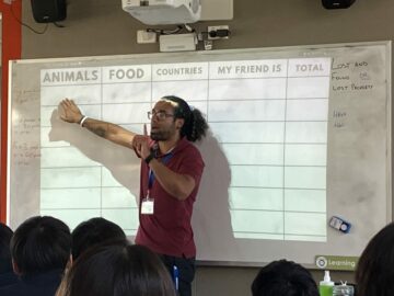 ジュニア先生の授業、生徒たちは、とても積極的です。競い合って手を挙げて答えています。本当に素晴らしいと思います!
