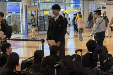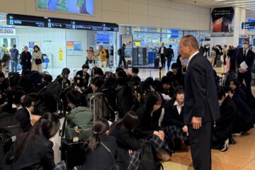 校長先生がお見送りに来てくださいました。研修旅行委員より挨拶もしてもらいました。