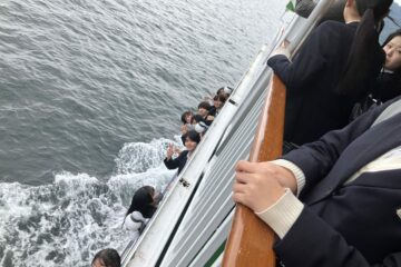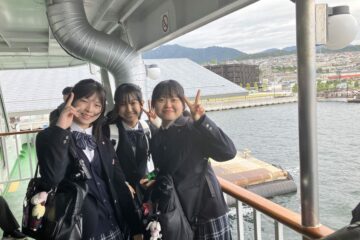 多くの生徒たちがデッキに上がって、風を受けていました。少し肌寒い位です。とっても気分がいい!