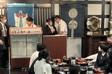 ミニお好み焼きをつけます!ってアナウンスがあると、拍手大喝采が起きました!!こちらの名物は、塩むすびです。単なる塩むすびが美味いんです。本当に。
