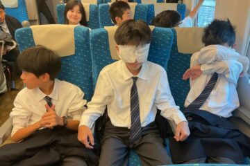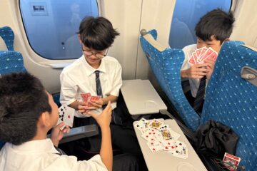 今回は、新幹線なかの様子についてお見せしたいと思います。 新幹線では、カードゲームをしたり、寝たり、友達とお話ししたりと一人一人が有意義に過ごしていました。