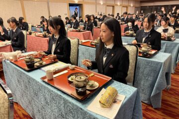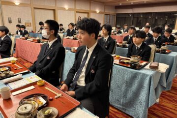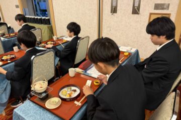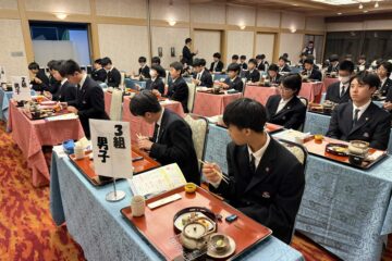 まずはお箸のあげ方、お箸の持ち方から教えて頂き、お箸のタブーを学びました。お箸の使い方に自信がない生徒が多く…