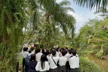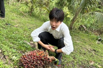 その後、ヤシの実の収穫を仕事とされている方に、収穫の様子を実際に見せていただきました。