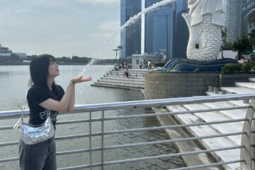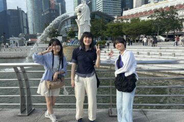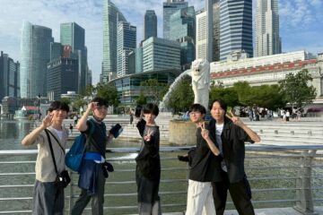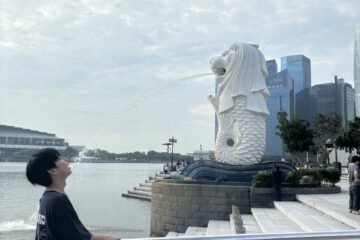 午前中は、まず「マーライオン公園」を訪れました。青空の下、海を背景にそびえるマーライオン像を前に記念撮影。マリーナベイ・サンズを背にしたシンガポールらしい絶景を楽しみました。生徒たちは「本当に水を吐いてる!」「想像より大きい!」と嬉しそうに写真を撮っていました。
