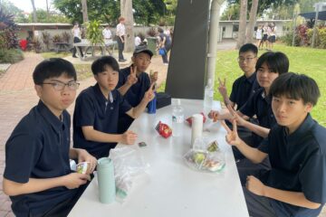昨日は戸惑っていた生徒たちも、今日はすぐに外に出てスナックを食べ始めています。