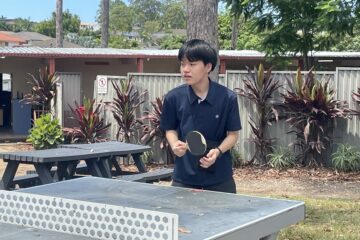 スナックを食べる時間を惜しんで、バディと卓球で遊ぶ生徒もいました。