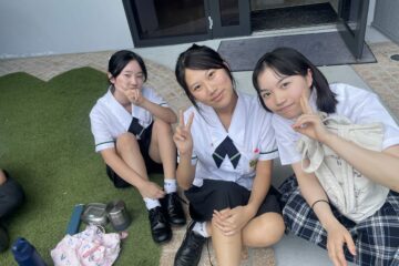 昨日は戸惑っていた生徒たちも、今日はすぐに外に出てスナックを食べ始めています。