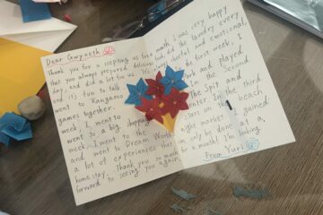 1ヶ月ともに過ごしてくれたBuddyとホストファミリーに手紙を書く活動をしました。それぞれ趣向を凝らして、言葉だけではなく折り紙を添えるなどして、感謝の気持ちを込めていました。