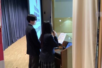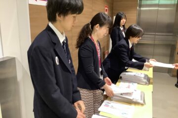 高校説明会を生徒会(中高合同)、広報実行委員会の生徒が司会、学校生活の話、YouTubeライブ配信、来校者の方々へ資料受け渡し、座席への誘導を行いました。