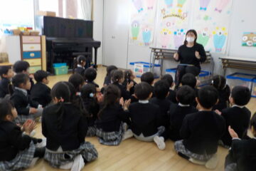 年少組は初めてのお遊戯会。 ドキドキしながらもおうちの方に見てもらえることを楽しみにしていました。 …