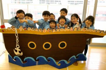 卒園まであと4日となった年長さん。 思い出作りとして、お遊戯会で使った船に、一人ひとりの顔を描いて貼…