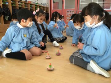 ばら組では、お部屋でのこま遊びが盛り上がっています!
