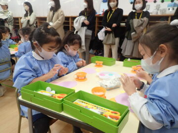 おうちの人に頑張っているところを見てもらえて大張り切りの年中組さんでした。