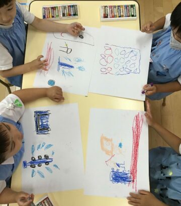 今日は水遊びの絵を描きました。 「水鉄砲が楽しかった」「プールで宝石を見つけたところを描く」と言って楽しんで描いていたひまわり組さん。 友だちや先生に嬉しそうに見せてくれましたね!