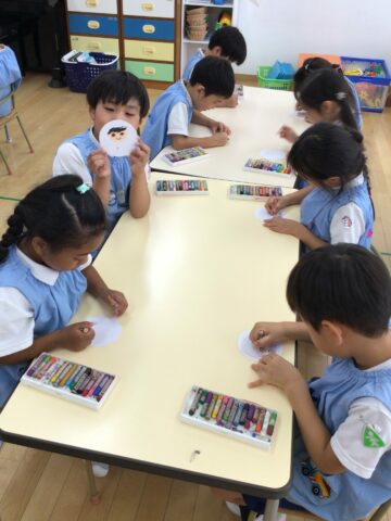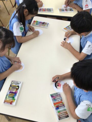 今日は“おまつり”で使うおみこしに貼る似顔絵を描きました。
