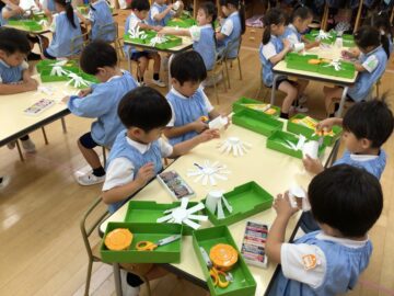 今日は“はじき絵”という技法を使い、コスモスを作りました。