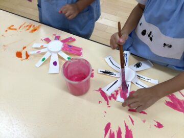 クレヨンで描いた柄が消えてしまわないかと、ドキドキしながら絵の具で色を塗っていたばら組さん。