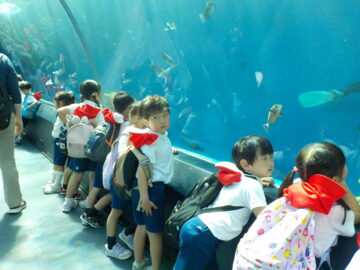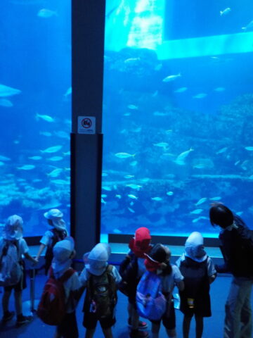 たくさんのお客さんがいましたが、子どもたちはお友だちと手を繋いで並んで上手に歩き、最後まで水族館を楽しんでいました。