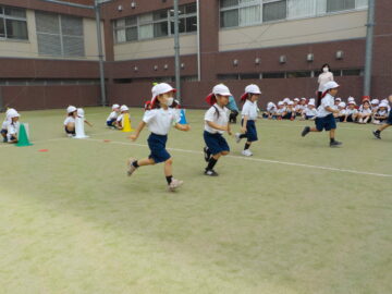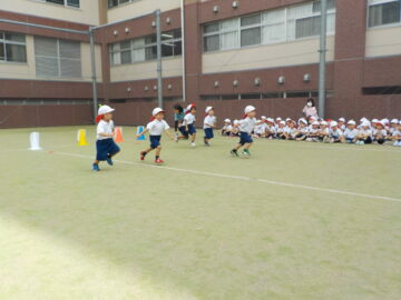 今日は外で運動会練習を行いました。かけっこの練習ではゴール目指して頑張って走っていたすずらん組さん。
