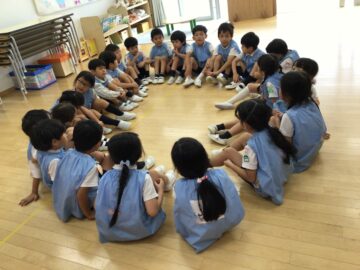 「バトンを落とすと遅くなっちゃうから丁寧に渡そう!」「手をパーにすると早く走れるんだよね!」とみんなで早く走るためのコツを話し合いました。