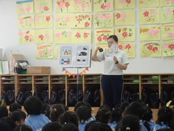今月は、年少組8人、年中組1人、年長組7人のお友だちのお祝いをしました。