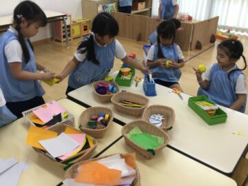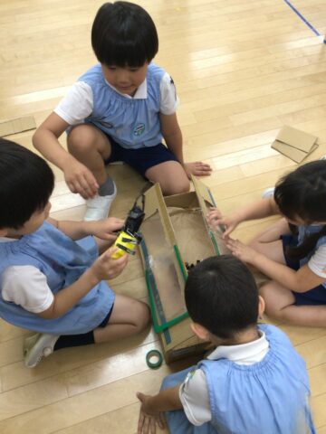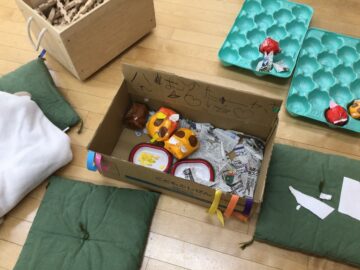 作り方を友だち同士で教え合ったり、お客さんに触り方を伝えたり、楽しく過ごしているさくら組さんでした♪