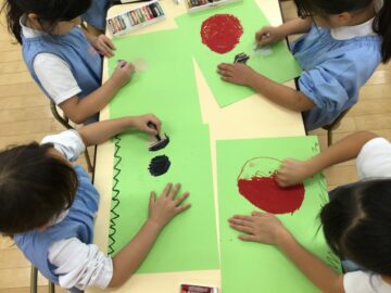 「おまつり楽しかったね!」「大玉上手に転がせた!」などとお友だちとお話をしながら描く姿がありました!