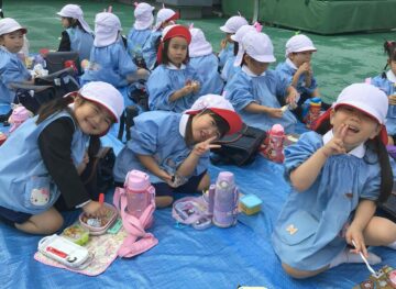 年少組みんなで食べることができて、とっても嬉しそうにしていたもも組さん。