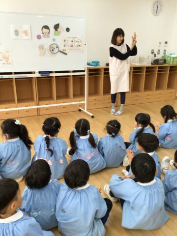 今日は保健室の相原先生が手洗いの仕方についてお話をしてくださいました。