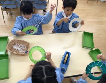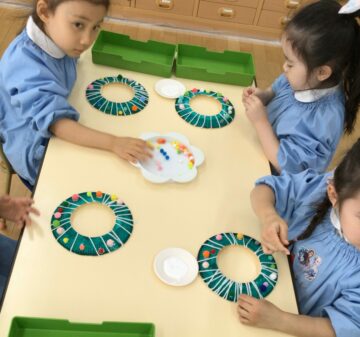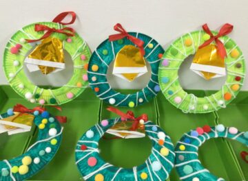 クリスマスリースの飾りつけをしたひまわり組さん。