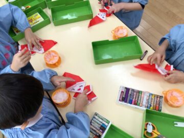 先週、折り紙でかわいいサンタクロースを作ったばら組さん。