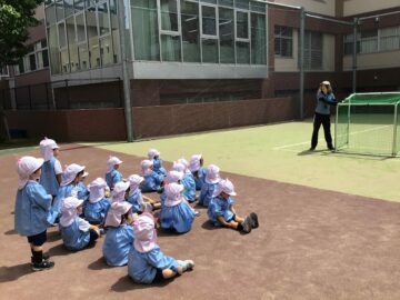 今日はみんなで、園庭とお砂場に探検に行きました。
