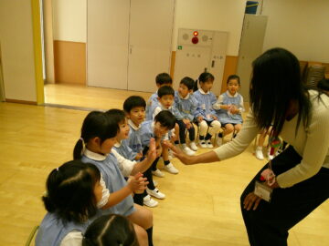 今日は年長さんになって初めての英語の時間がありました。