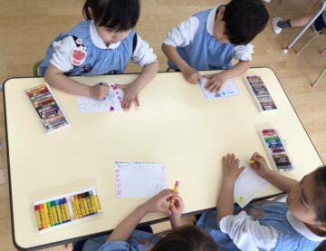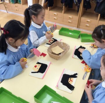 ポーチにフェルトで顔のパーツを丁寧に作ったり、鉛筆やクレヨンでカードを描いたりして楽しく製作していたうめ組さん。