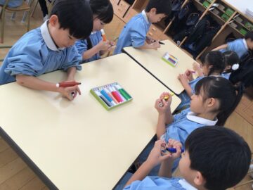 こだわりをもって色付けしてオリジナルのこまに変身させ、こま回しに挑戦!