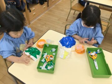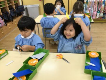 ハサミで丁寧に目と角を切って「鬼だぞ」と言っていた子どもたち。
