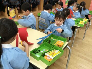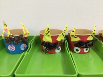 今日は節分に向けて豆入れの製作を行いました。