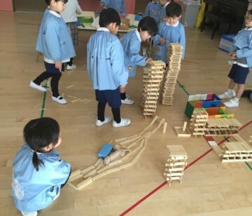 戸外で体を動かしたり、室内で好きなものをじっくり作ったりと、楽しく過ごしているひまわり組さん。