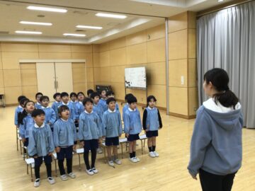 今日は卒園式の練習を本番と同じ多目的ホールで行いました。