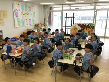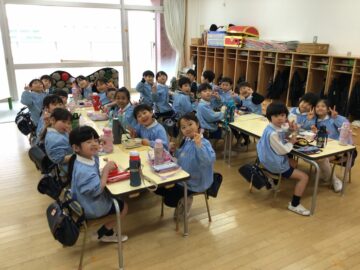 年少さん年中さんの頃同じクラスだったお友だちや、年長さんで仲良くなったお友だちと美味しくお弁当をいただきました♪