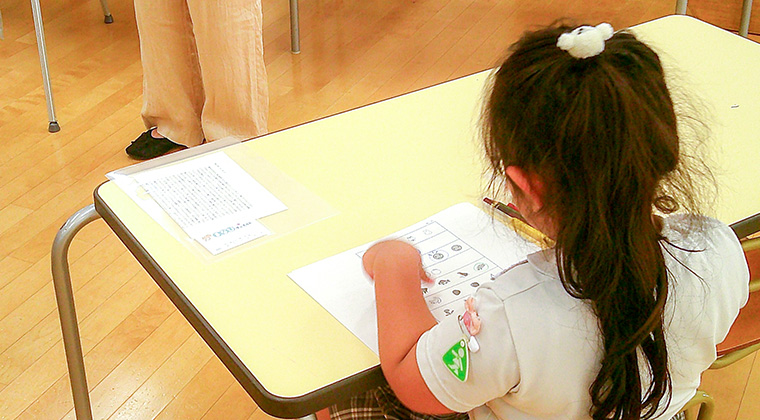 ペーパー学習に加え、お話の記憶、巧緻性、口頭試問などの豊富な内容を、楽しく学びます。