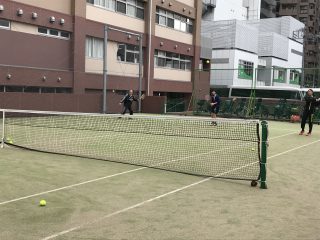 女子テニス部では、渡邉校長先生が部活動に参加されていました。