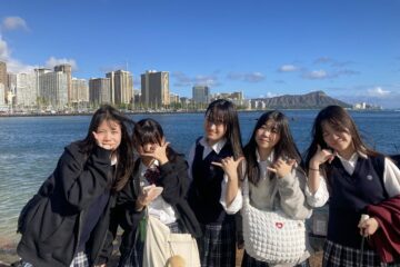 ダイヤモンドヘッドやワイキキビーチを背景にクラス集合写真の撮影をしたり、日立の「この木何の木」で有名なモンキーポットの木を撮影したり、ハワイの暖かい陽気のなか、みんなが思い思いに過ごしていました。