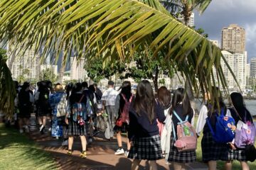 明日からはさらに本格的にホノルルを学ぶ、そして体感する修学旅行に突入するので、「今日は早めに休んで明日からに備えるように」と学年主任の西村先生が生徒に言い含めていました。