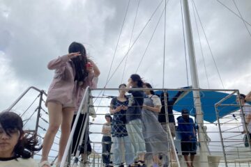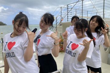 ランチの後、オーシャンボヤージ乗船をしました。最初は穏やかなクルージングのような感じでしたが、大きく揺れる船にたくさんの水しぶきがかかる演出に生徒は終始はしゃいでいて、「すごくスリルがあって楽しかった!もう1回乗りたかった」などと口々に言っていました。