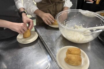 まず、おいなりさんは油揚げを煮て酢飯を作り、各自で詰めました。