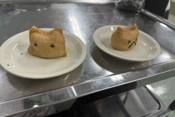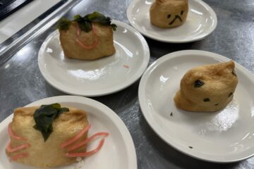 そのうち顔をつけてネコの形にするなど、見た目もかわいいおいなりさんが出来上がりました。