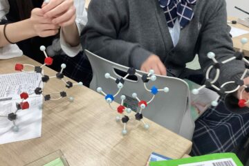 我々の化学の授業では問題演習だけでなく、単元で出てきた構造を自分で組み立てることによりイメージしやすくなり、記憶に定着させやすくしていきます。特に有機化学という分野では、分子が多く連なったサリチル酸メチルや、無水フタル酸などの芳香族化合物や高分子化合物などでつまづくことが多くなるため、以下のような模型で学習を補助しています。