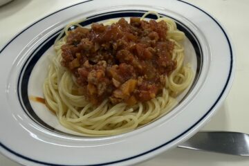 ミートソースでは、玉ねぎやにんじんなどの野菜のみじん切りに挑戦し、包丁の持ち方や姿勢、安全確認の大切さを意識して取り組みました。